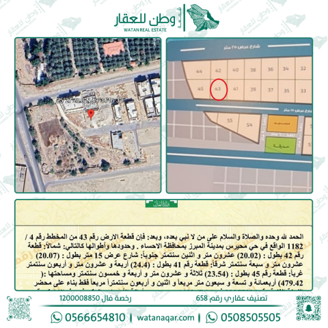نصف أرض للبيع في درة الشمال 43 / 1 / 2