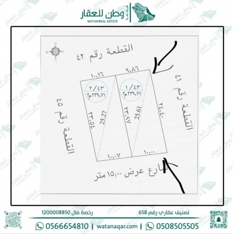 مساحة كل قطعة : 239 م