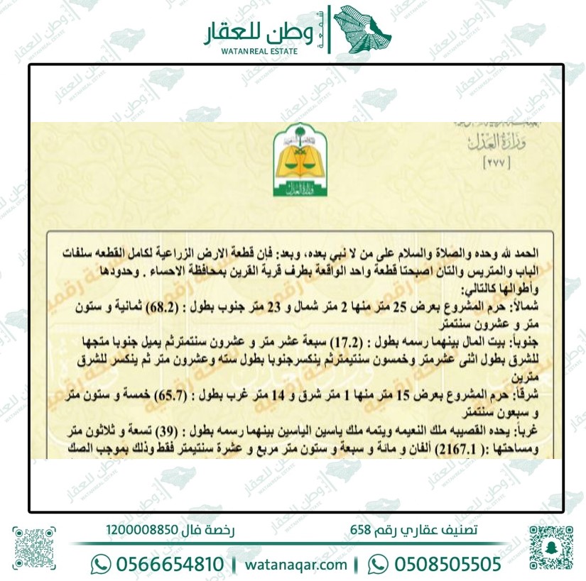 - شارع 15م فرعي بطول 65 متر مجاور دوار ( القرين )