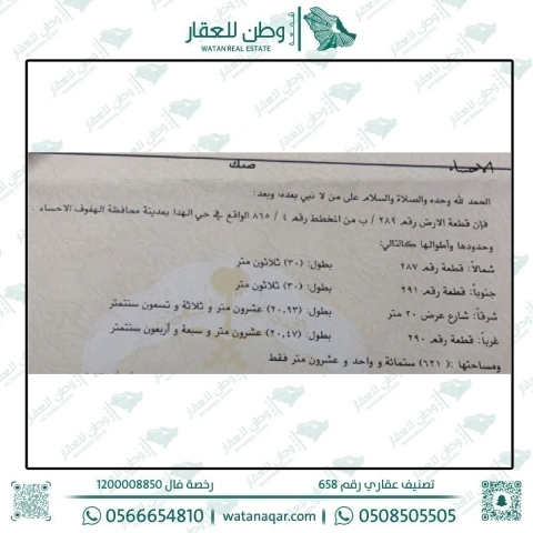 أرض للبيع في الهدا 289 ب