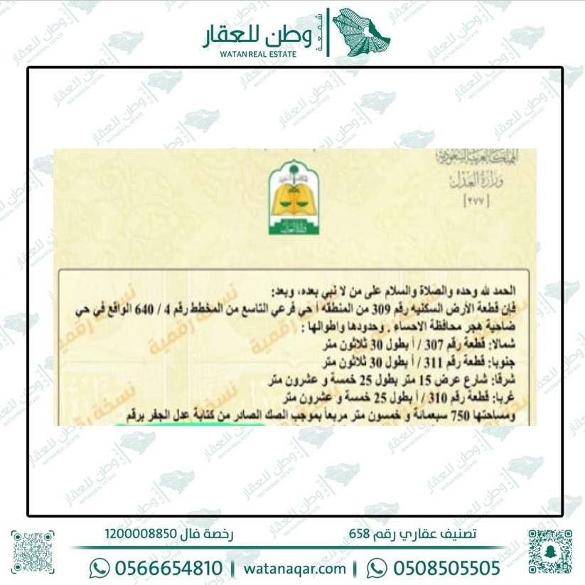 أرض سكنية للبيع في الحي التاسع 309 أ