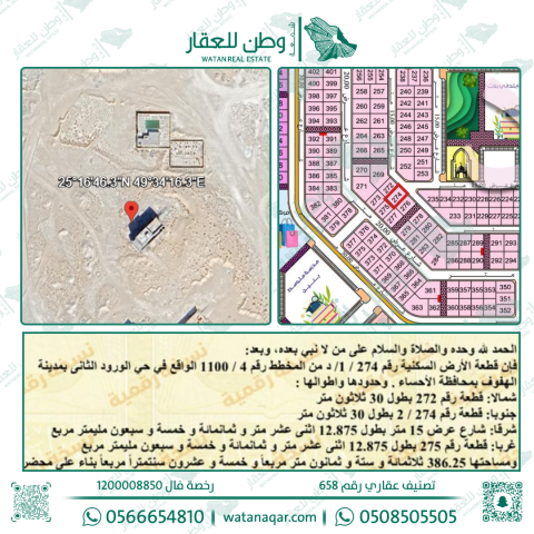 نصف أرض للبيع في الورود 274 / 1 د