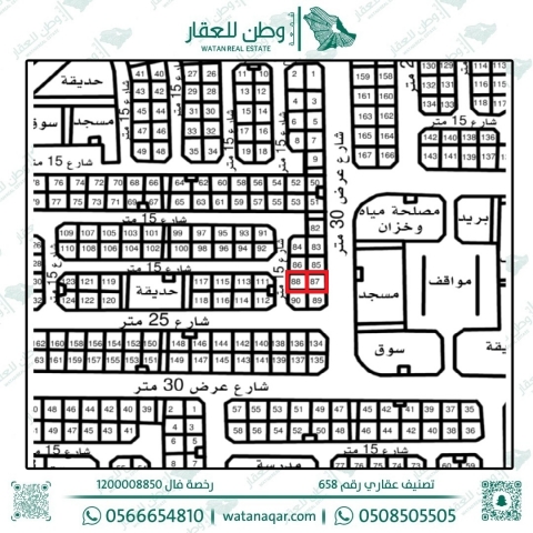 أراضي متجاورات سكنية للبيع في شرق الحديقة 87 + 88 ب