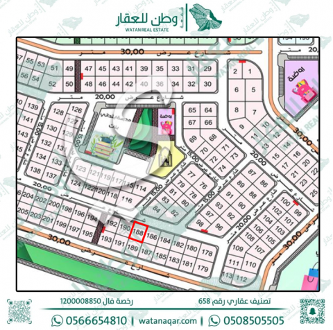 نصف أرض للبيع في الورود 188 / 1 ي