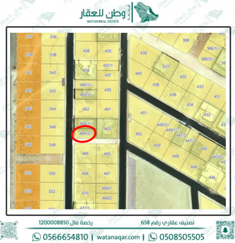 نصف أرض للبيع في الحي الخامس 464 / 2 د