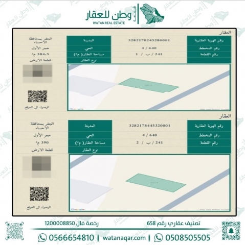 نصف أرض للبيع في الحي الاول 241 / 1 + 2 ب