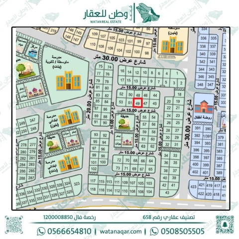 نصف أرض للبيع في الحي الثاني 49 ج