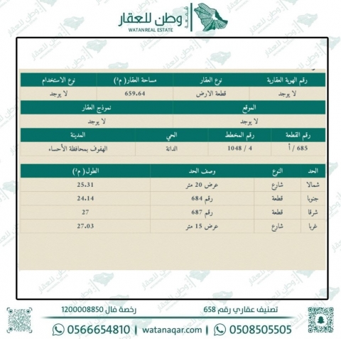 أرض للبيع في الدانة بالهفوف 685 أ