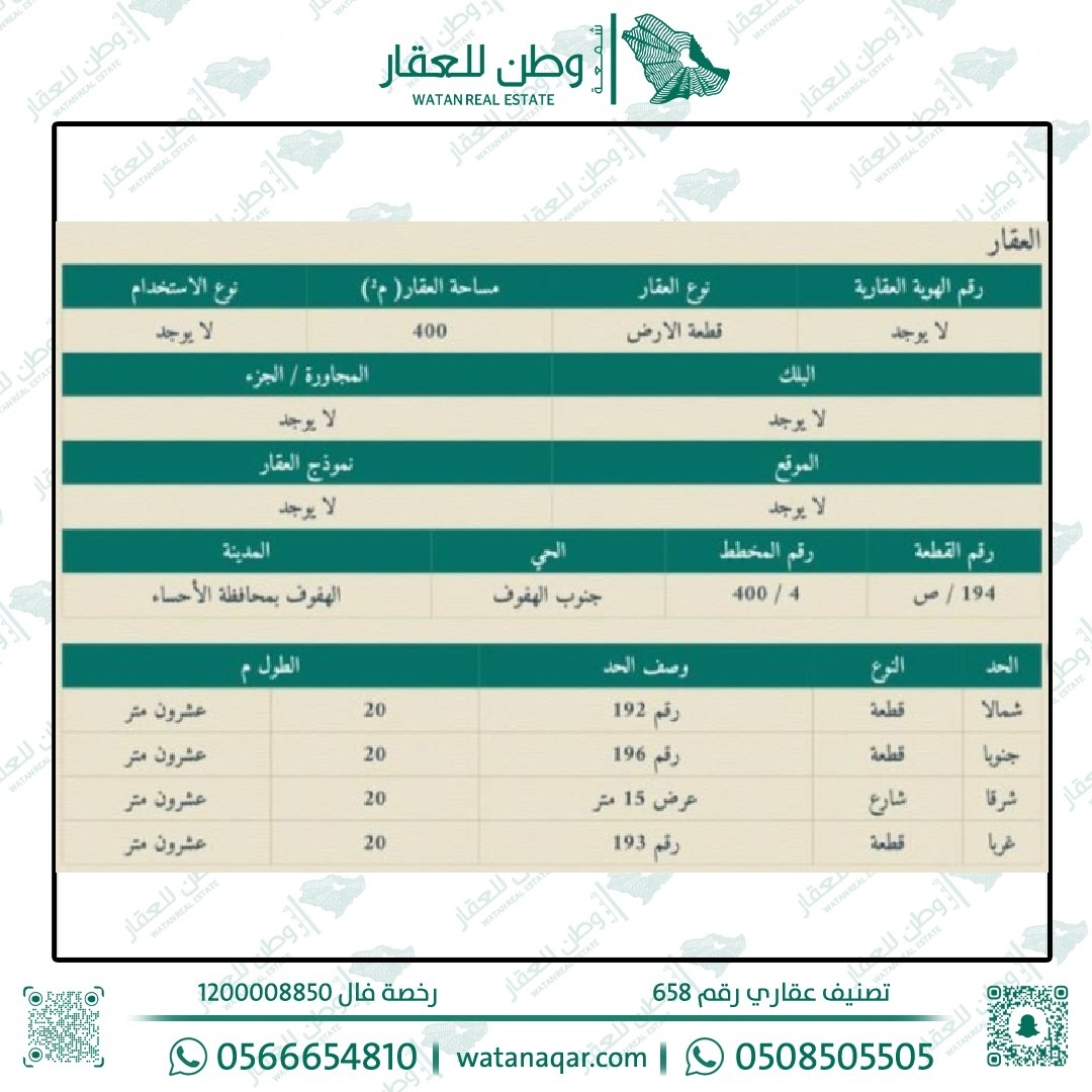 أرض سكنية للبيع في جنوب الهفوف 194 ص