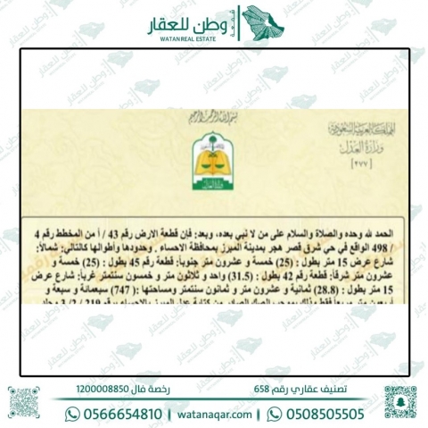 أرض للبيع في الديوان / شرق القصور 43 أ