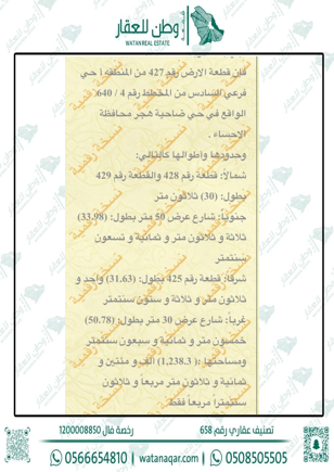أرض للبيع في الحي السادس 427 أ