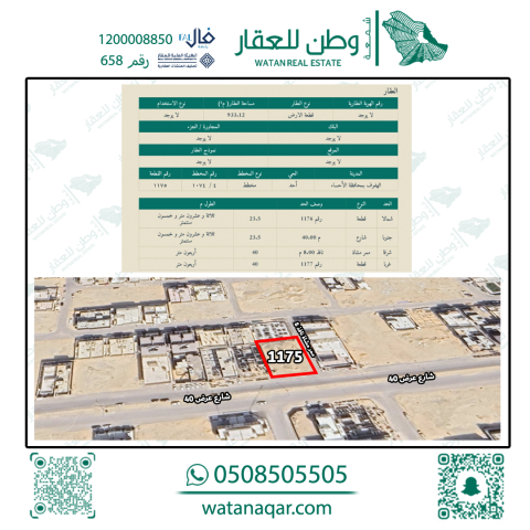 أرض سكنية للبيع في جوهرة الهادي 1175