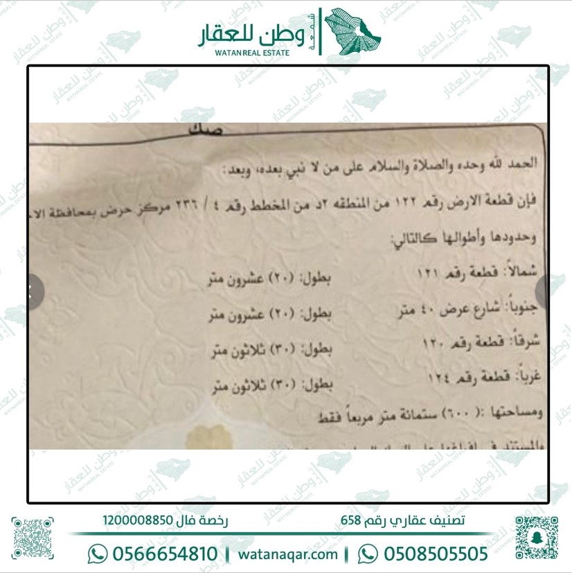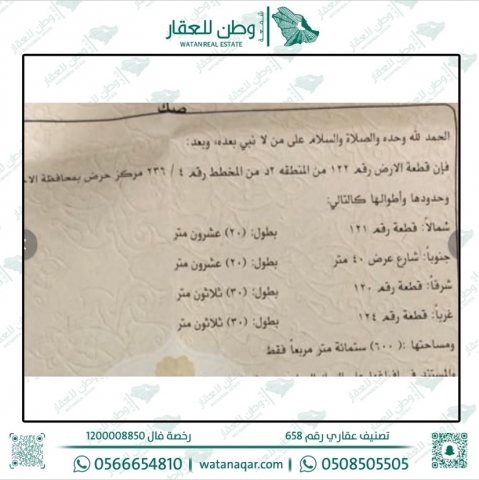 أرض للبيع في حرض 122 د